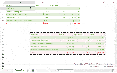 The Camera shape provides an instantly updating view of a spreadsheet range, ideal for dashboards, and supports movement, resizing, rotation, grouping, and Excel I/O operations.