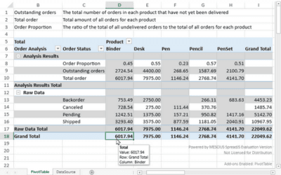 Pivot Calculated Items (Optional Add-On)The SpreadJS' Pivot Table Add-on lets users add custom calculated items in rows/columns, using formulas with constants or other pivot items.