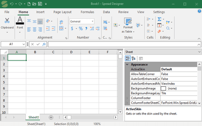 Customize the look and feel of your .NET spreadsheet with built-in or custom skins, easily applied via code using C# or VB, or the Spread Designer.