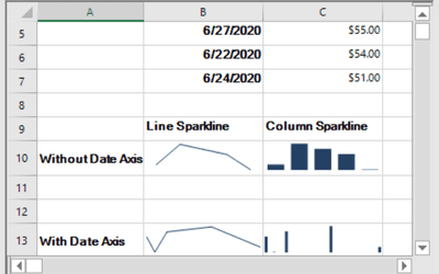 Sparklines are small charts that can be applied to quickly visualize data and transform it in a compact form in a cell.