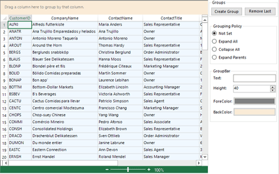 Spread supports Outlook-style grouping of rows, which is helpful for displaying large amounts of data in the order that the user needs. You can select columns to group by either double-clicking on the header or clicking and dragging the column into the grouping bar at the top of the Spread instance. Groups can either be expanded or collapsed at runtime using the expand/collapse indicators, and Spread supports multiple levels of grouping. When using multiple levels, the higher level is the parent group and the lower level is the child group.