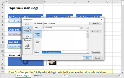 Enhance .NET spreadsheet navigation with hyperlinks in cells, allowing users to access webpages, emails, workbook ranges, or trigger custom actions.